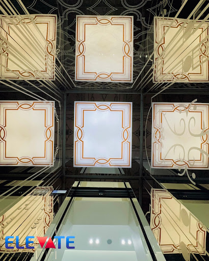 تم تصميم سقوف مصاعد إليفيت بطريقة هندسية أنيقة وتفاصيل مضيئة تضفي طابعاً فنياً فريداً داخل الكبينة. تضم هذه السقوف زخارف مضيئة بتناسق دقيق، وإضاءة موزعة بانسيابية فنية، ولمسات عصرية تنعكس على المرايا بتأثير بصري مميز.